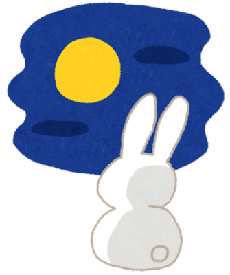 因みに、日本人は月の黒っぽいところ(海と呼ばれていますが、実際に水はありません。)を見て、ウサギが餅つきをしている姿を想像しました。